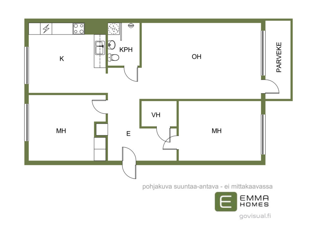 | Huoneistoselitelmä | 3h+k+kph/wc+vh+p |
